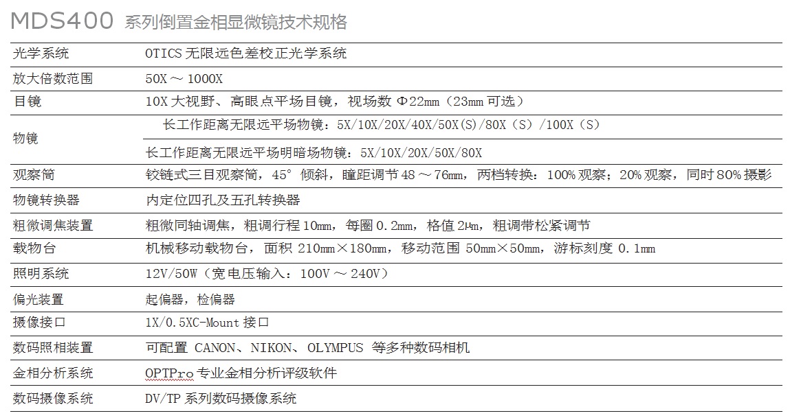 - MDS400倒置金相顯微鏡技術(shù)參數(shù)